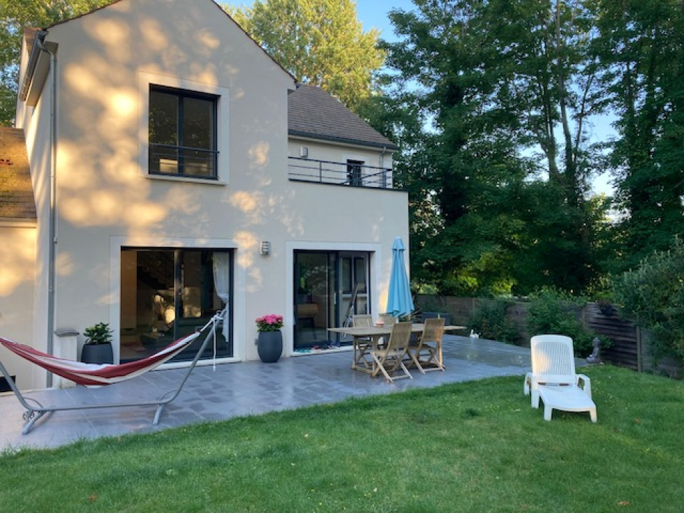 L'Agence Myway vous propose cette magnifique maison récente (2016), spacieuse, lumineuse et économe en énergie (DPE B) nichée dans un environnement calme, recherché et sécurisé, à deux pas du centre du charmant village de Crespières. Parfait compromis entre modernité et confort de vie, elle offre tous les atouts rêvés pour accueillir une famille. Dès l'entrée d'une belle hauteur sous plafond (2,70m), vous serez séduit par la pièce de vie d'une superficie remarquable de près de 69 m², baignée de lumière grace à sa double exposition Sud et Ouest. Ce vaste espace réunit un salon chaleureux, agrémenté en son centre d'un poêle à bois récent diffusant une chaleur douce et une cuisine ouverte entière équipée et son cellier, invitant à partager de beaux moments familiaux et entre amis. De grandes baies donnent sur une terrasse ensoleillée et un jardin paysager clos de plus de 1000 m², parfait pour les enfants et les repas d'été. Le rez-de-chaussée dispose également d'une chambre d'amis avec salle d'eau privative, idéale pour recevoir, ainsi que de nombreux rangements, des toilettes, un cellier attenant à la cuisine, un double garage avec local à velos et deux emplacements de stationnement extérieurs. A l'étage, la maison poursuit sur sa belle distriibution avec trois chambres confortables, une suite parentale bénéficiant de son dressing, sa salle de toilette et un accès à une terrasse plein sud d'environ 9 m². Une sixième chambre ou grand bureau de près de 20m² offre une flexibilité d'aménagement, tandis qu'une salle de bains avec douche et des toilettes séparées complètent l'ensemble. Les combles sont amenageables pour encore plus d'espace, au gré de vos besoins. Du rez de chaussée, un accès à deux caves saines d'environ 20m² chacunes mène également vers le jardin. Lumineuse, parfaitement entretenue et pensée dans les moindres détails, cette maison conjugue confort moderne, élégance et sérénité. Elle incarne le cadre de vie privilégié que recherchent les familles exigentes à Crespières et n'attend plus que la votre pour écrire la suite de son histoire. Contactez Nicolas au 06 13 21 18 19 pour plus d'informations ou pour réserver votre visite. Une visite virtuelle est également disponible sur demande.
